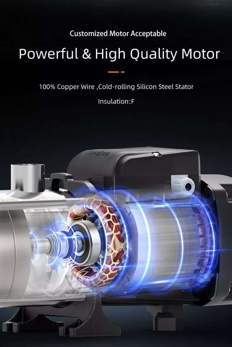 Повеќестепена центрифугална пумпа е опрема за пумпа за вода која поврзува повеќе центрифугални пумпи во серија и генерира центрифугална сила со ротирање на повеќестепени работни кола за да го зголеми излезниот притисок. Постепено го зголемува притисокот преку сериското поврзување на повеќестепените работни кола, со што се постигнува испорака со висок подигање. Опсегот на перформанси на повеќестепената центрифугална пумпа е широк, а брзината на проток и главата може да се прилагодат според потребите на корисникот. Погоден е за циркулација и притисок на топла и ладна вода во системи за работа под висок притисок, заштита од пожар, вода за напојување на котелот и системи за вода за ладење, како и за испорака на разни течности за испирање.