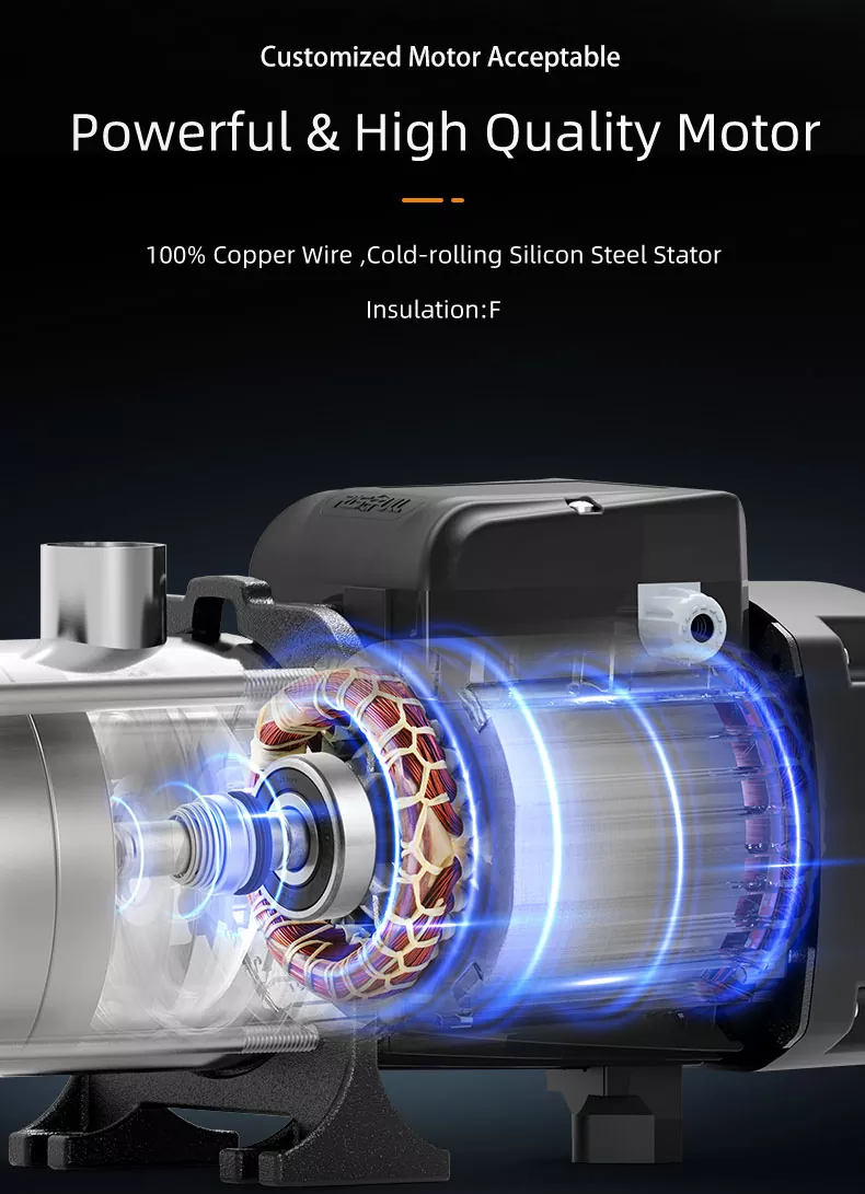 Иновативен дизајн: Нашата паметна повеќестепена пумпа со висок притисок е опремена со најсовремена технологија, обезбедувајќи оптимална функционалност и издржливост. Повеќестепениот дизајн овозможува излез со висок притисок, што го прави идеален за широк спектар на апликации.